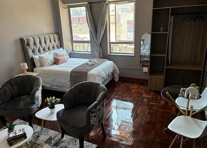 4Am Legacy Studios is merely 1.9 km from Carlton Centre and nearly a 25-minute walk from Joburg Theatre. It takes 20 minutes to get to the centre of Johannesburg on foot.